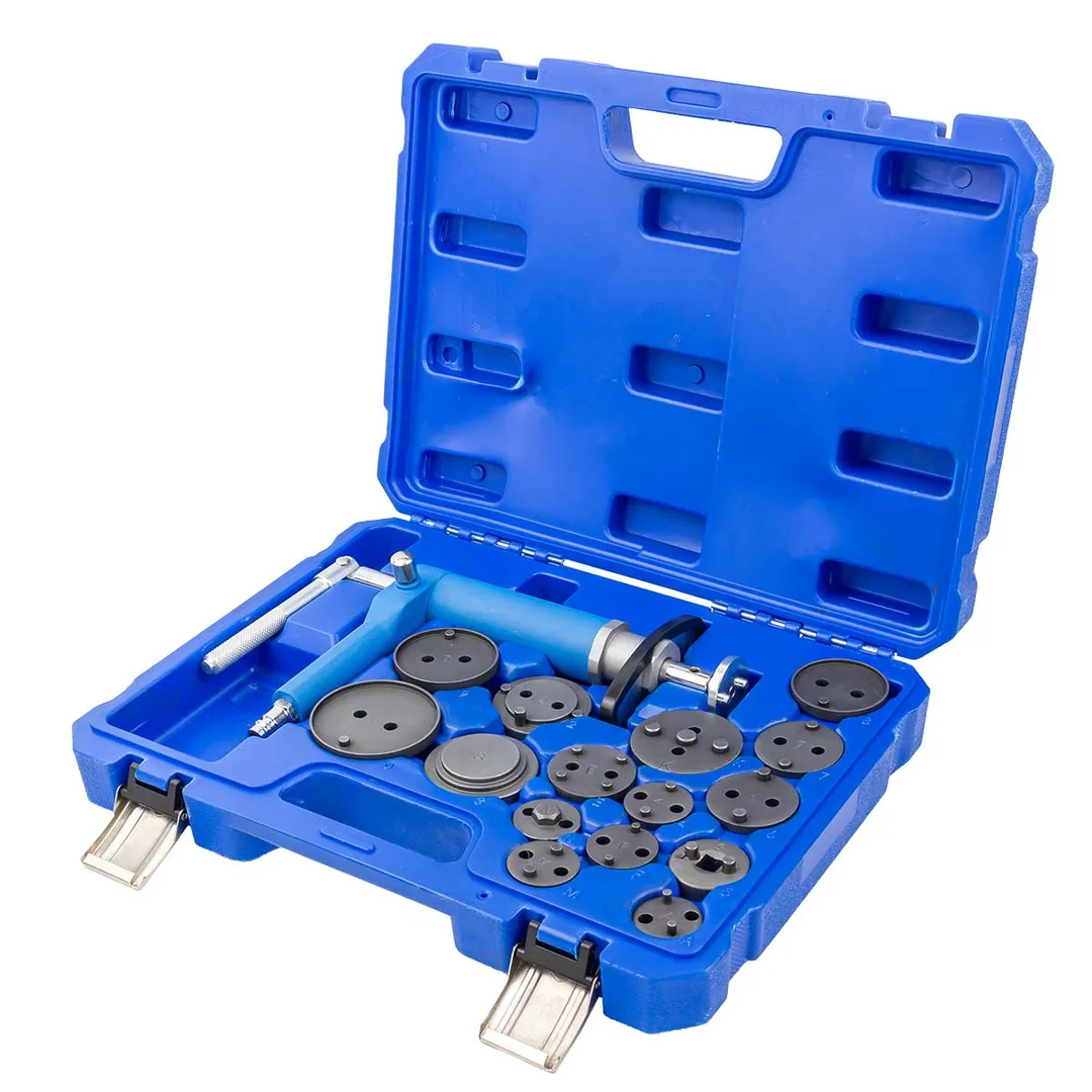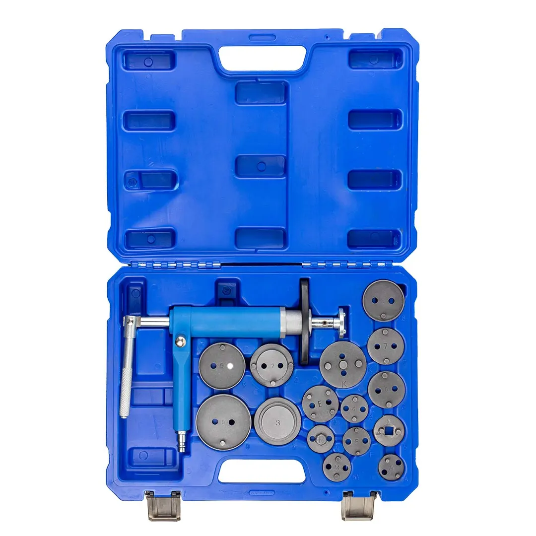 Инструмент для обслуживания тормозных цилиндров из 16 предметов (пневматический привод) предназначен для вдавливания цилиндров суппортов автомобилей при ремонте и обслуживании тормозной системы. Разработан для работы с различными типами тормозных цилиндров, включая цилиндры с правым и левым приводами. Это позволяет использовать набор для обслуживания широкого спектра автомобилей. Набор включает в себя различные инструменты, необходимые для выполнения различных операций по обслуживанию тормозных цилиндров, включая снятие, установку, регулировку и замену деталей. Наличие всех необходимых инструментов в одном наборе упрощает и ускоряет процесс обслуживания. Инструменты в наборе изготовлены из прочных и долговечных материалов, таких как высококачественная сталь. Это обеспечивает долговечность и надежность инструментов при выполнении задач по обслуживанию тормозных цилиндров. Комплектация: насадки- адаптеры 15 шт., пневматический привод с лево- и правосторонней резьбой, кейс. Для удобства хранения и транспортировки поставляется в прочном пластиковом кейсе.Преимущества работы с нами
