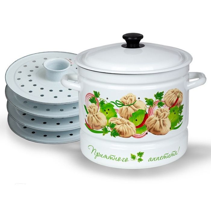 Кастрюля паровая 10л (белая) Манты Керченский металлургический завод 43704-222/6