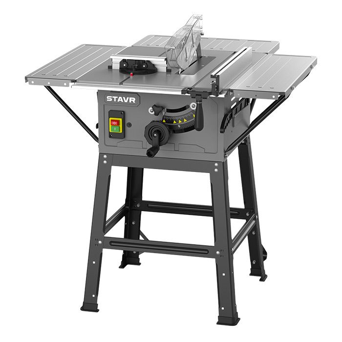 КОМПЛЕКТАЦИЯ: пильный диск (250 мм), дополнительные столы с кронштейнами (3 комплекта), комплект опорных ножек, параллельный упор с фиксатором, угловой упор, толкатель, защитный кожух, шестигранный ключ, 2 гаечных ключа, руководство по эксплуатации.