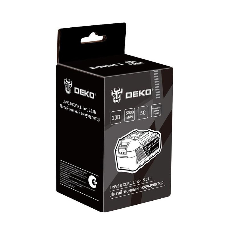 - Аккумулятор UNV5.0 CORE для инструментов предназначен для бытового использования, где важны простота эксплуатации и надежность в повседневных задачах. АКБ работает с напряжением 20 В, что обеспечивает достаточную мощность для работы с шуруповертами, гайковертами и другими инструментами марки DEKO, а емкость 5.0 Ач позволяет выполнять стандартные операции без частых перерывов на подзарядку. Токоотдача 5С гарантирует стабильную работу даже при кратковременных нагрузках, что особенно актуально для бытовых условий, где инструменты реже подвергаются экстремальным испытаниям.