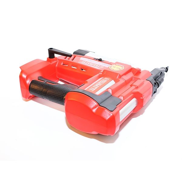 Инструмент работает на аккумуляторе с напряжением 18 В, способен забивать гвозди длиной до 50 мм, а также поддерживает использование скоб длиной до 40 мм, что расширяет его функциональность и позволяет работать с различными материалами. Магазин может вмещать до 100 гвоздей, что снижает необходимость частой перезарядки.