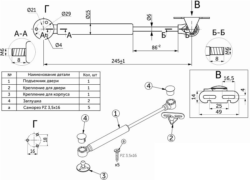 Подъемный механизм (амортизатор мебельный) предназначен для плавного и равномерного открывания фасада вниз. Мощность 60 Ньютонов. Представляет собой трубку с маслом, штоком, а также системой уплотнителей и пыльников. Принцип действия - на выталкивание. В комплекте имеются крепления.Технические характеристики: