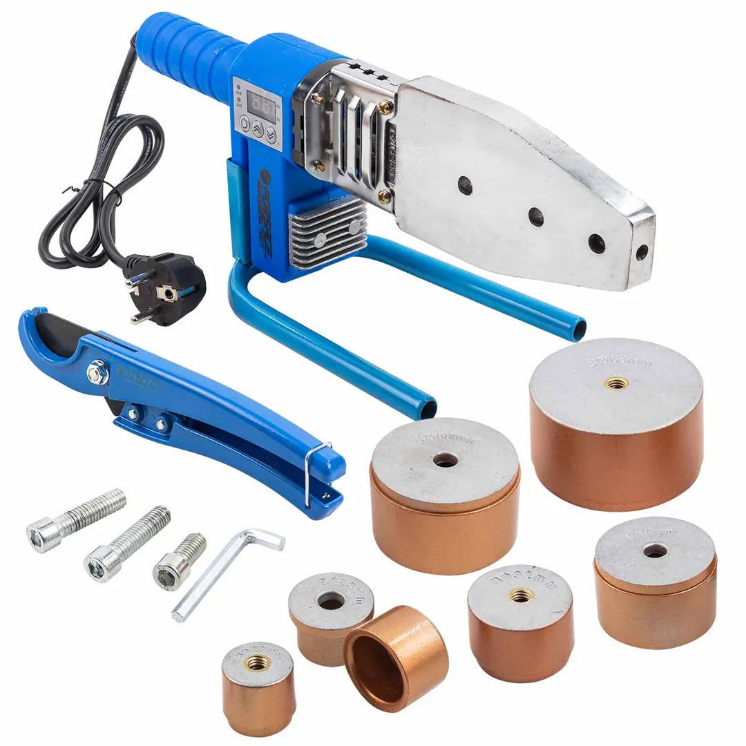 Сварочный аппарат для пластиковых труб предназначен для монтирования систем водоснабжения, отопления и канализации в частных домах и квартирах. Подойдет паяльник для труб ПВХ, ПВД, ПНД и полипропиленовых. Мечевидная форма нагревателя, в сочетании с подходящей насадкой, сформируют герметичный шов, сохраняя прочность и пластичность материала. Сварка пластиковых труб осуществляется раструбным типом, что гарантирует долговечное соединение расплавленных поверхностей труб и фитингов. Имеются индикаторы подключения к сети и контроля температуры. Аппарат сварочный для труб автоматически отключится в случае перегрева. Паяльник для труб работает с трубами диаметром 20, 25, 32, 40, 50 и 63 миллиметра. Антипригарное тефлоновое покрытие исключает прилипание расплавленного материала к поверхности. Это делает паяльник для труб пластиковых удобным для чистки после работы. В комплекте имеется специальная подставка, на которой можно размещать паяльник для трубы пластиковой. Это обеспечивает дополнительную безопасность во время работы для оператора. Также в комплекте с паяльным аппаратом идёт труборез 0-40 мм, с помощью которого можно быстро подготовить трубы к сварке. Благодаря идущему в комплекте кейсу, аппарат удобно хранить и транспортировать. Напряжение 220В ~50Гц; Мощность 1кВт; Диапазон температур 0-380 °С; Время нагрева 4мин; Вес аппарата 2кг.Преимущества работы с нами