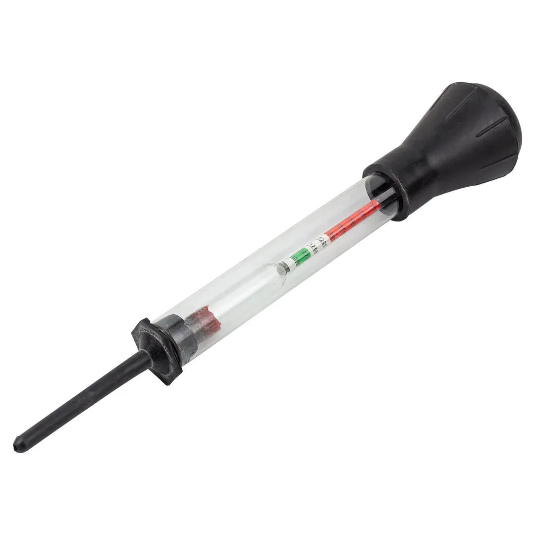 Ареометр для электролита с колбой, в блистере — это прибор с помощью которого можно определить плотность вещества. В классическом виде он представляет собой утяжеленный стеклянный поплавок с градуировочной шкалой. Поплавок опускают в жидкость, и, когда он фиксируется на определенном уровне, снимают показания по шкале плотности. Ареометр работает на основе принципа Архимеда. Его применяют, чтобы узнать плотность любых жидкостей. В зависимости от того, какой материал проверяется, внутри прибора наносится соответствующая шкала. Для автовладельца главное разобраться с показаниями шкалы отвечающей за плотность антифриза и электролита. Эти две жидкости с разными плотностями, поэтому им нужны разные шкалы для измерений. Применение : Сожмите грушу ареометра и поместите прибор в жидкость. Плавно отпуская грушу, наполните колбу измеряемым веществом. Немного покрутите ареометр, чтобы удалить пузырьки воздуха. Держите прибор вертикально и дождитесь пока ареометр внутри остановится на одном месте. Важно, чтобы при этом он не касался стенок колбы! Отметка, на которой уровень жидкости совпадает со шкалой ареометра — и есть значение плотности этой жидкости.Преимущества работы с нами