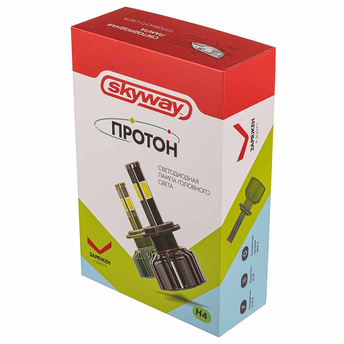 Автолампа-LED H4 25W 6000K 2500Lm 12/24V 2-конт ПРОТОН (4A) SKYWAY радиатор+вентилятор+контроллер компл.2 шт - позволяет водителям значительно улучшить видимость на дороге и увеличить площадь освещаемого участка. Излучает широкий поток света, который просвечивает туман и при этом освещает непосредственно дорожное полотно.