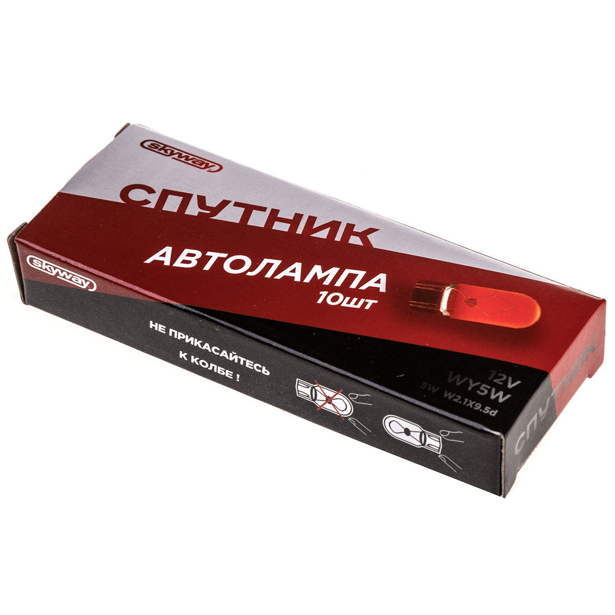 Автолампа WY5W 12V 5W W2.1*9.5d СПУТНИК SKYWAY - лампа WY5W дополнительного света не имеет цоколя, применяется для указателей поворотов любых автомобилей. Лампа устойчива к частому включению и выключению, а также к вибрациям. Одна нить накаливания с максимальной мощностью 5 W рассчитана на подключение к бортовой сети с напряжением 12V.