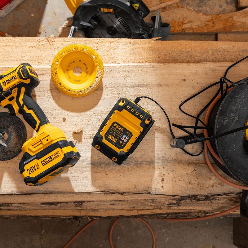 Батарея Li-Ion Denzel BH-20-4.0 28444 номинальным напряжением 20 В и емкостью 4,0 А·ч обеспечивает работоспособность аккумуляторного инструмента. Подходит для всех инструментов единой платформы Denzel Power System 20V.