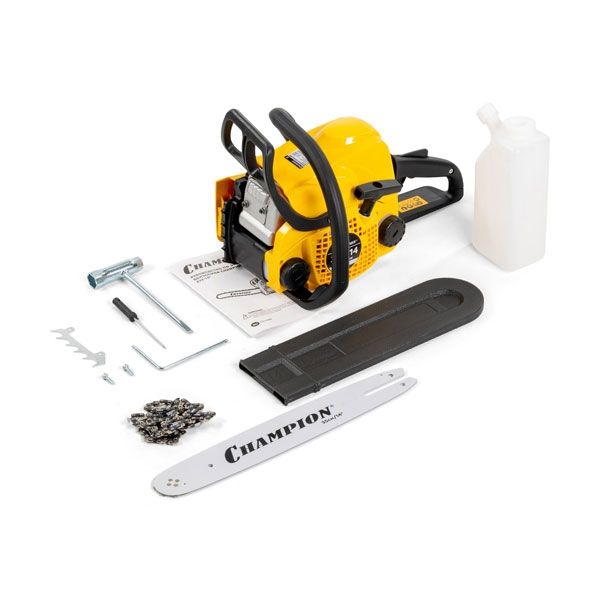 Бензиновая цепная пила, 1,5 кВт, 31,8 см3, 14"-3/8-1,3-50E + подарок: масло для цепи 1л; свеча; цепь; масло для 2-тактных двигателей 0,1л. CHAMPION A232-14
