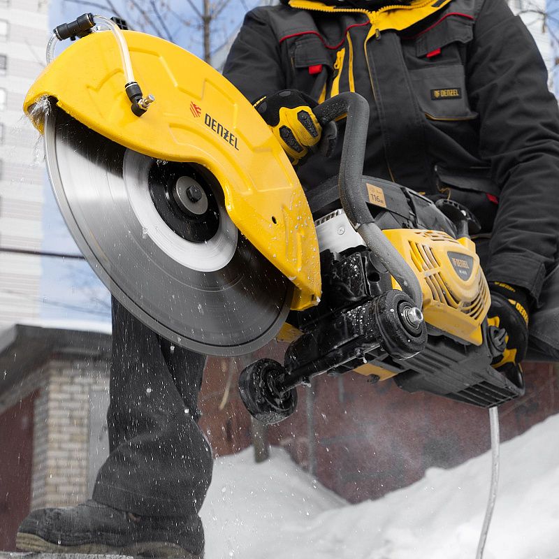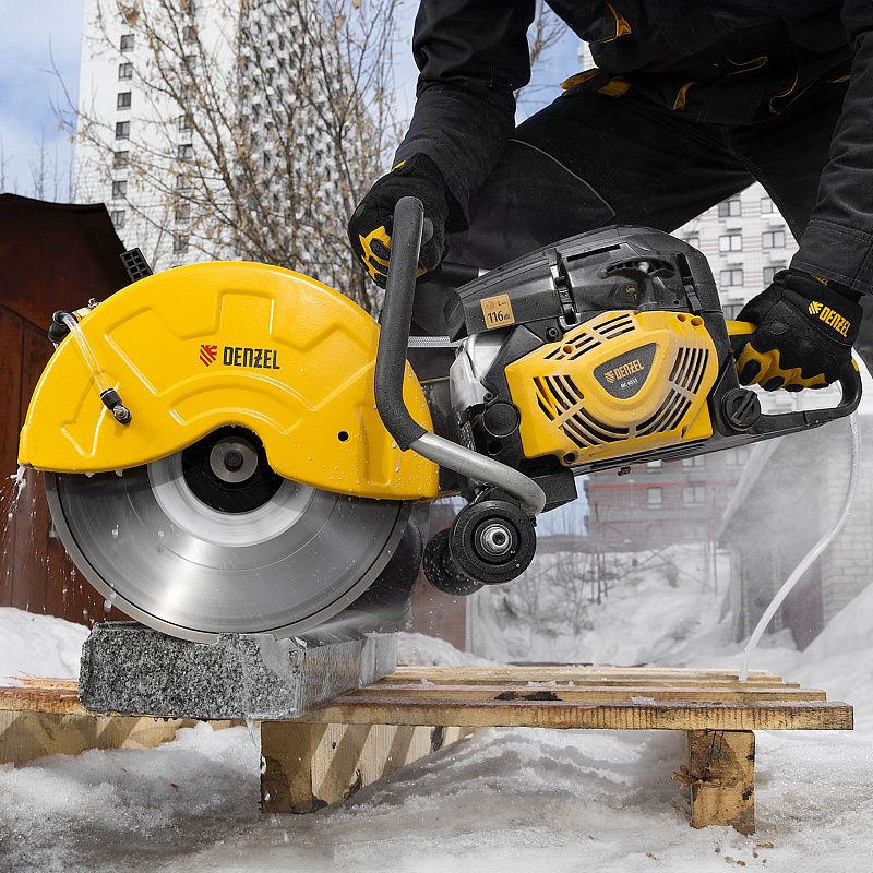 Бензорез Denzel MC-6335 66301 предназначен для работы с бетоном, асфальтом, чугуном, сталью и другими твердыми материалами. Оптимален для проведения демонтажных работ на строительной площадке, также может применяться во время спасательных операций. Для работы используются алмазные, абразивные и зубчатые диски диаметром 350 мм. Эффективное решение поставленных задач обеспечивает двигатель объемом 65 см3 и мощностью 4,5 л.с.