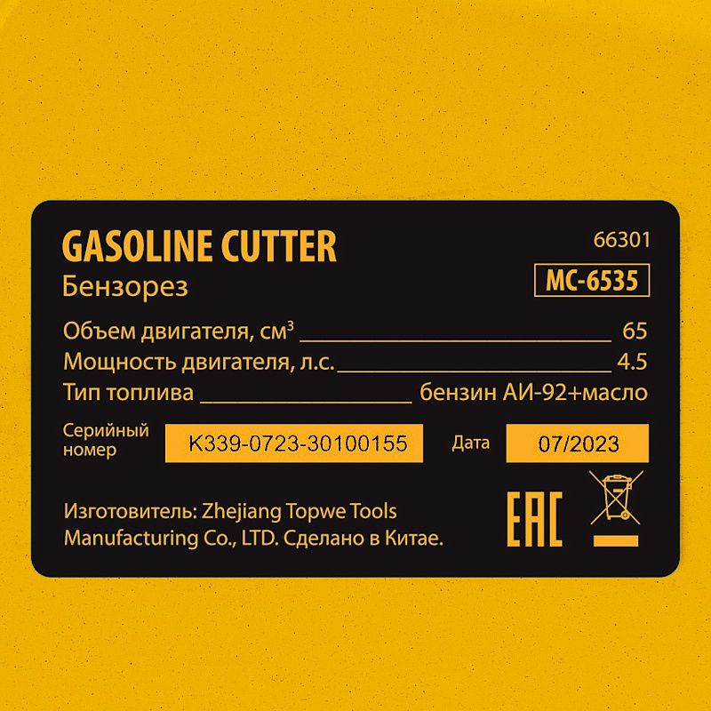 - Гарантия 3 года — высокое качество бензореза подтверждено производителем.