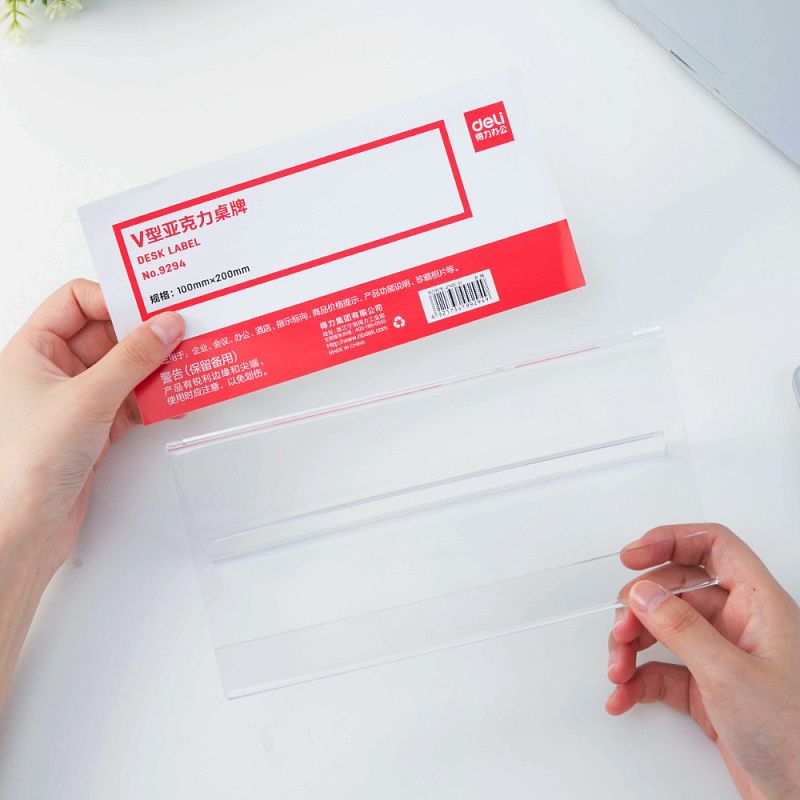 Бейдж настольный "Deli", 100x200 мм, прозрачный