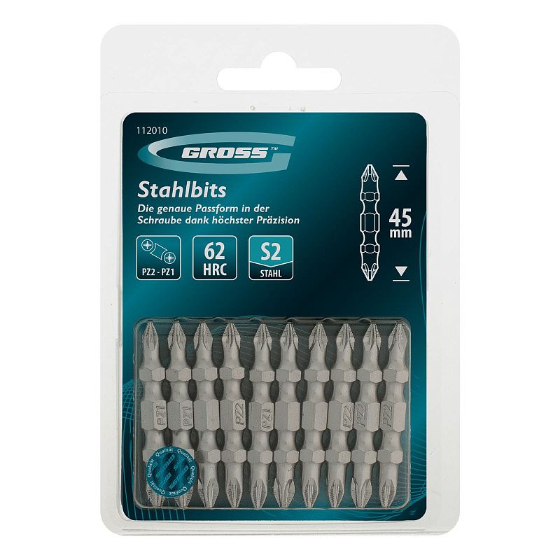 Бита двухстор., PZ2-PZ1х45мм, сталь S2, 10шт. Gross 112010