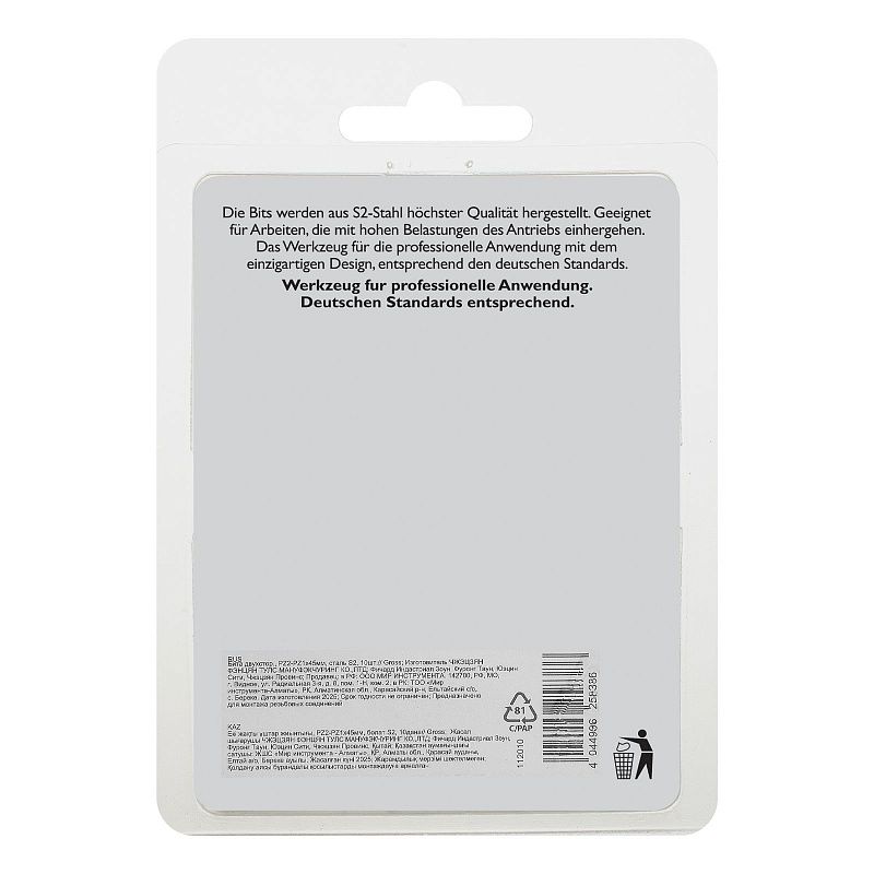 Бита двухстор., PZ2-PZ1х45мм, сталь S2, 10шт. Gross 112010, описание: