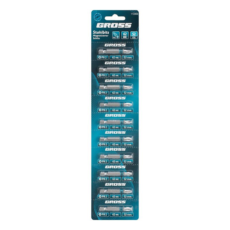 Бита PH2х50мм, сталь S2, шестигр., отрывн., 10 шт. Gross 113305, описание: