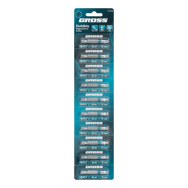 Бита PZ2х50мм, сталь S2, шестигр., отрывн., 10 шт. Gross 113145