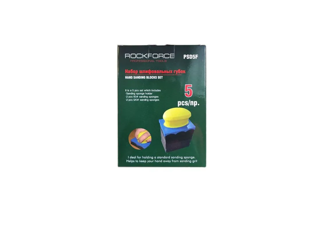 Блок для шлифования в наборе с губками абразивными 5 пр. 70х100мм RockForce RF-PSD5F, описание и характеристики: