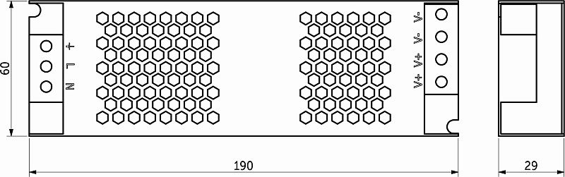 Размеры 190х60х29мм. Вх. напряж. 110-220V AC, вых напряж. 24V DC, мощность 150Вт, сила тока 6. 25A, степень защиты IP20. Простой и компактный блок питания.Технические характеристики: