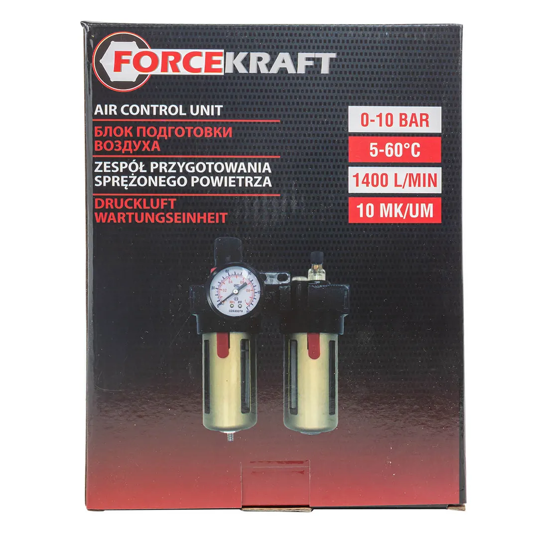 Блок подготовки воздуха 1/2'', фильтр-регулятор+лубрикатор, 10Мк, 1400 л/мин, 0-10bar, раб. t 5°-60° ForceKraft FK-BFC4000