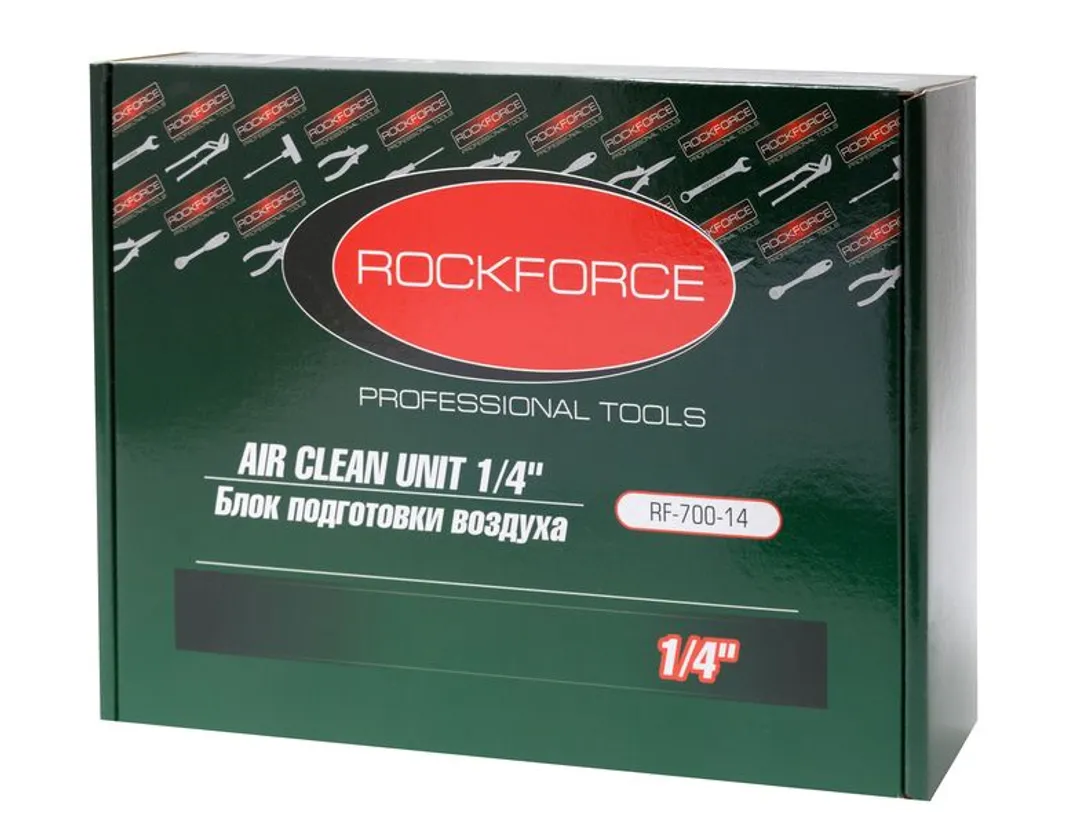 Блок подготовки воздуха 1/4'', фильтр 55 мл 5Мк, регулятор, маслодобавитель 80мл, 2200л/мин RockForce RF-700-14