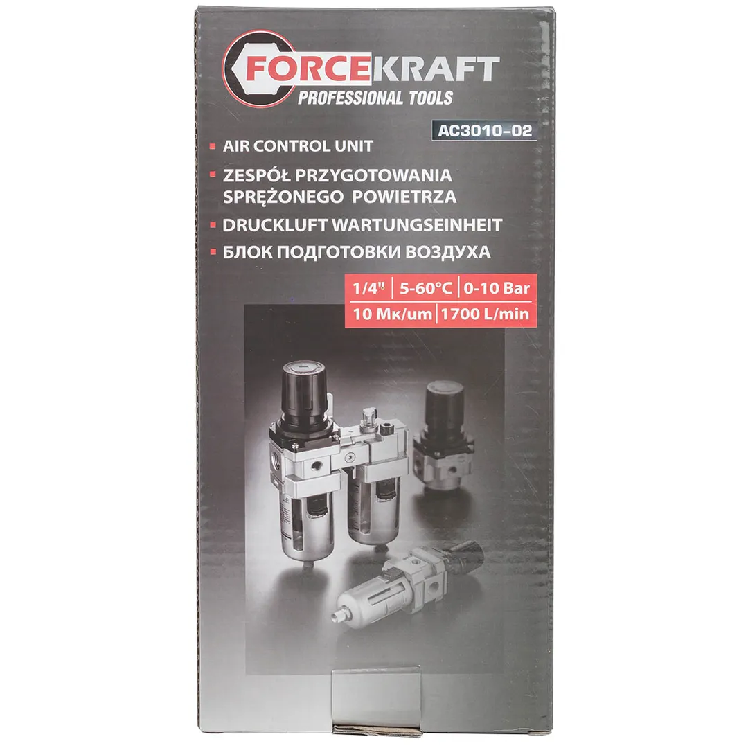 Блок подготовки воздуха 1/4'', фильтр-регулятор и лубрикатор, 10Мк, 1700 л/мин, 0-10bar ForceKraft FK-AC3010-02
