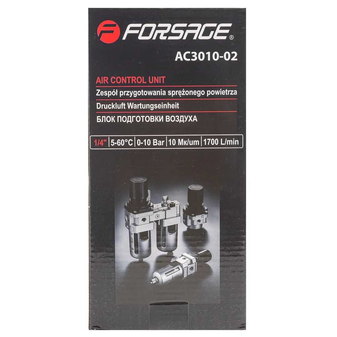 Блок подготовки воздуха 1/4'', фильтр-регулятор и лубрикатор, 10Мк, 1700 л/мин, 0-10bar Forsage F-AC3010-02