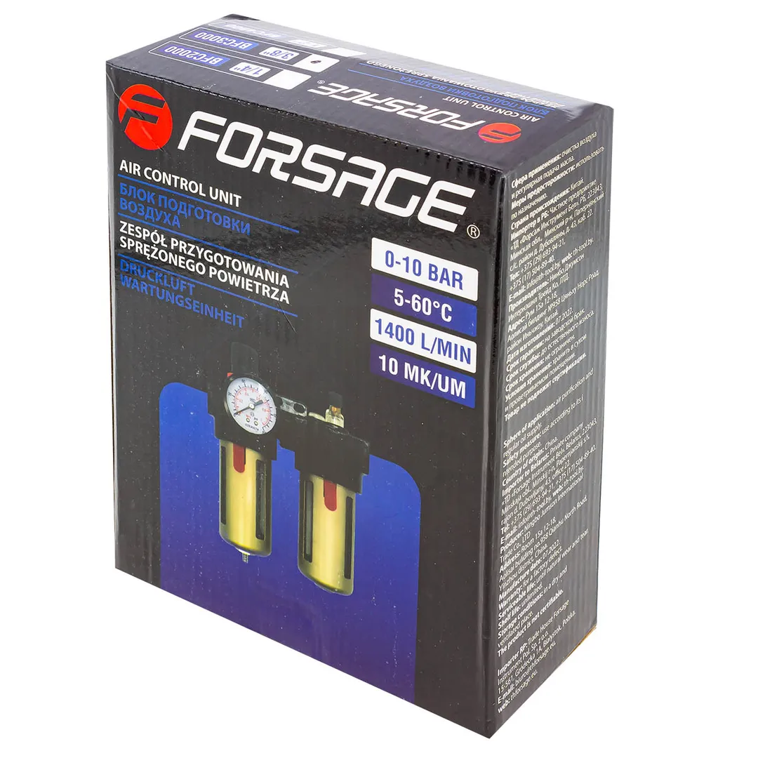 Блок подготовки воздуха 3/8'', фильтр-регулятор+лубрикатор, 10Мк, 1400 л/мин, 0-10bar, раб.t 5°-60° Forsage F-BFC3000