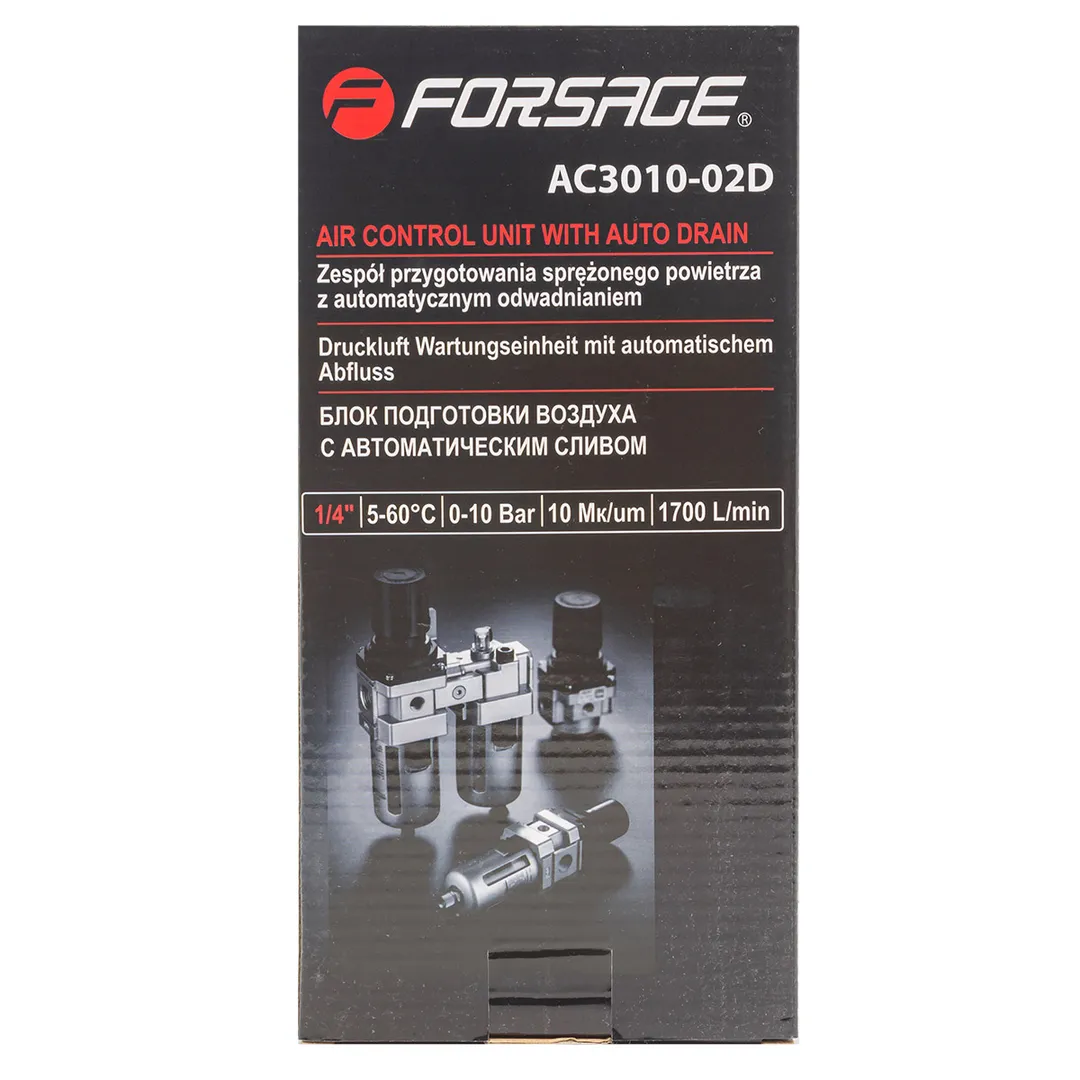 Блок подготовки воздуха, фильтр-регулятор + лубрикатор, 1/4", с автоматическим сливом Forsage F-AC3010-02D, описание и характеристики: