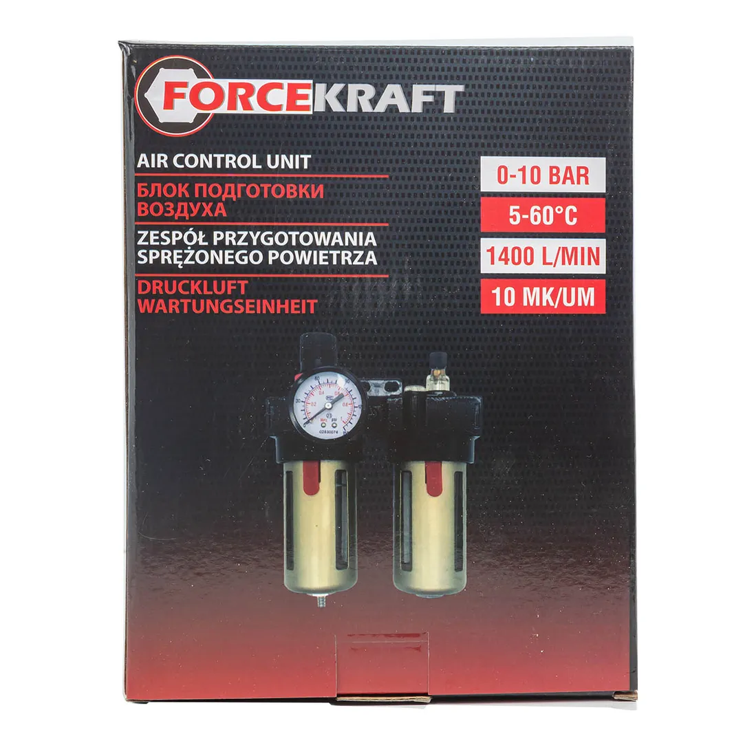 Блок подготовки воздуха, фильтр-регулятор + лубрикатор, 3/8" ForceKraft FK-BFC3000, описание и характеристики: