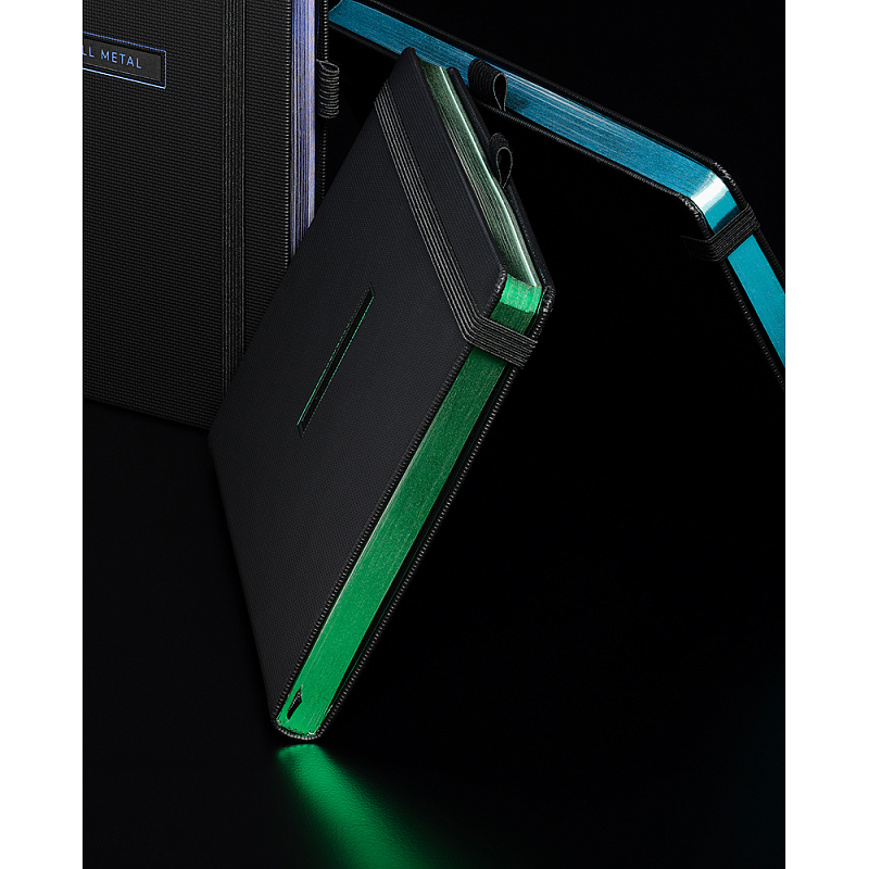 Блокнот "All metal green", А5, 96 листов, на резинке, черный, срез зеленый