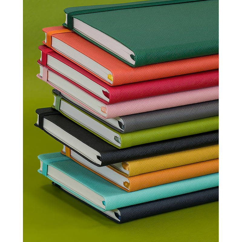 Обложка блокнотов из этой коллекции изготовлена из материала, произведенного в Италии и состоящего из остатков пищевой переработки яблочной кожуры. Инновационный материал, сочетающий в себе продукт с экологически чистым жизненным циклом. Экокожа коллекции Appeel дополнена специальной отделкой сафьян с изысканным дизайном и уникальными тактильными ощущениями. Никаких эстетических компромиссов ради подлинной экологичности.