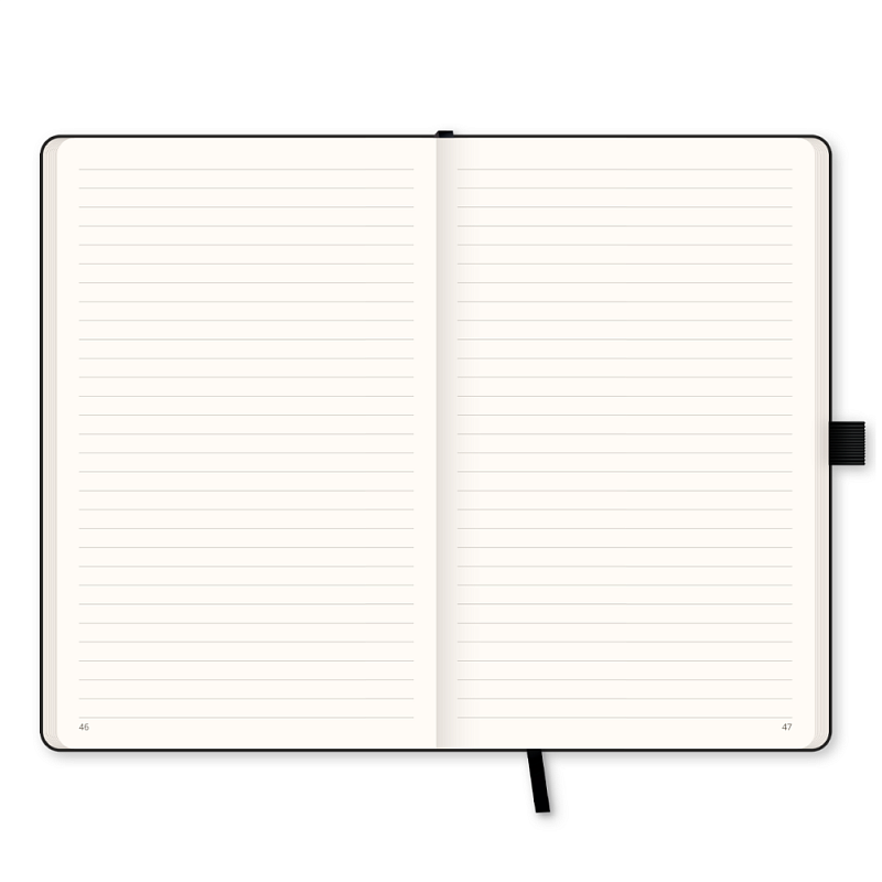Блокнот на резинке, блок линованный, 192 стр. из бумаги высокого качества плотность 80 гр, сертифицированной FSC®, с неповторимым индивидуальным светло-кремовым оттенком, близким к натуральному.