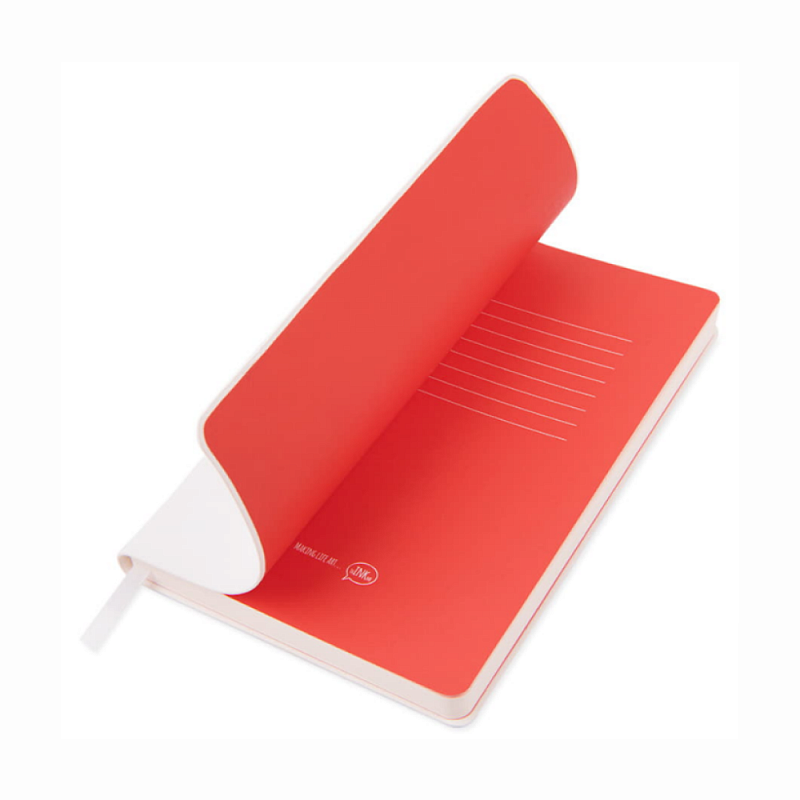 Блокнот с мягкой обложкой, цвет обложки белый, внутренний блок 256 страниц в точку из которых 8 последних листов перфорированные.