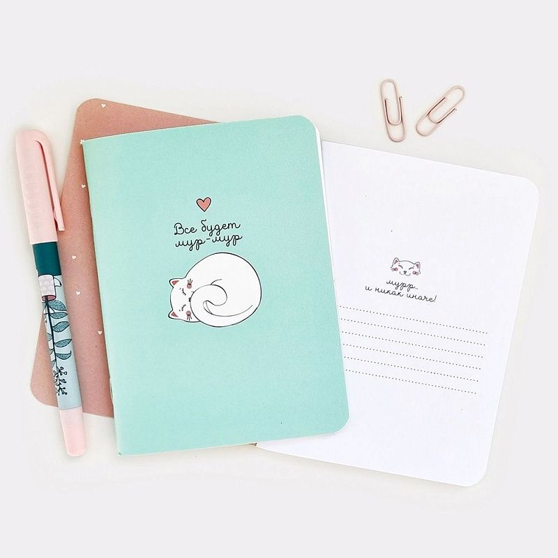 Блокнот "Mur-mur кот", А6, 32 листа, клетка, зеленый
