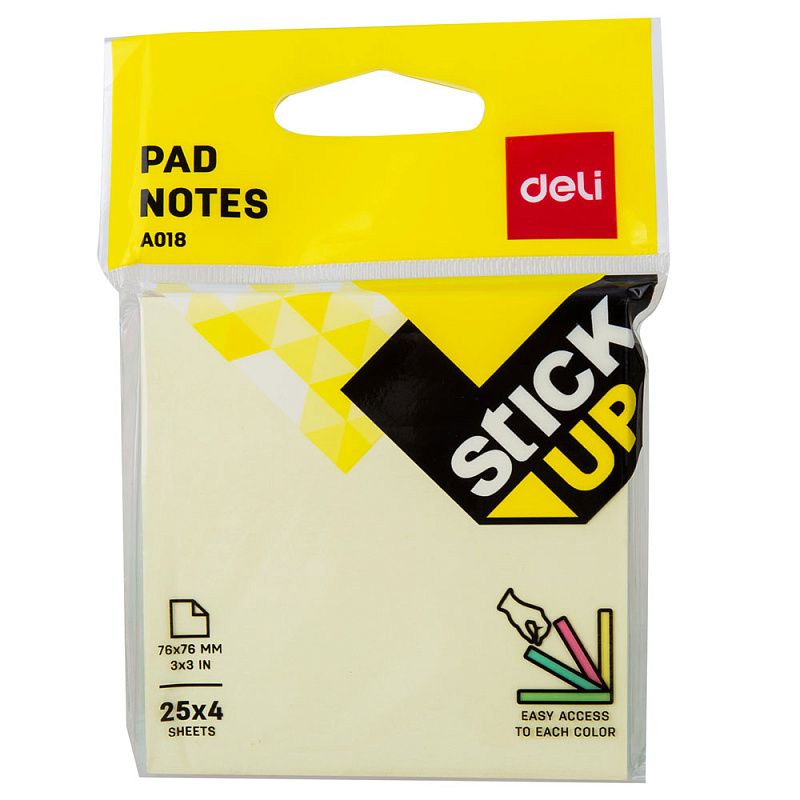 Бумага для заметок на клейкой основе "Deli", 76x76 мм, 100 листов, ассорти