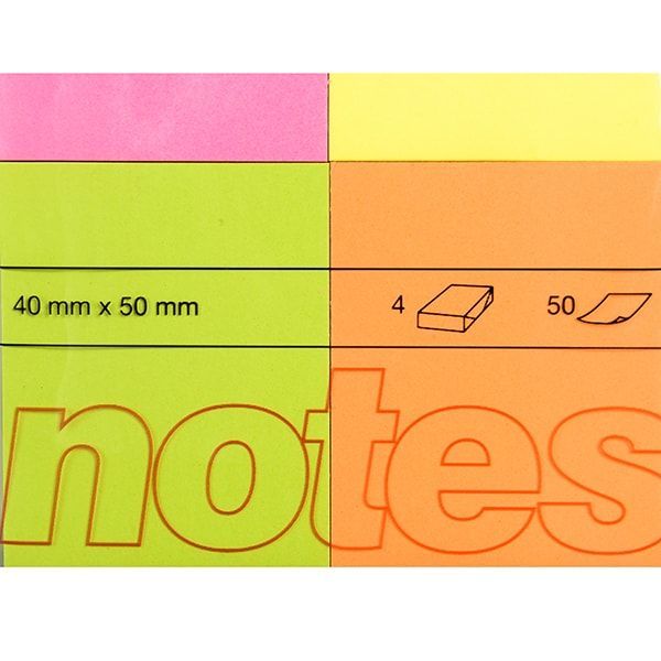 Бумага для записей на клейкой основе "Kores", 40x50 мм, 200 листов, ассорти неон