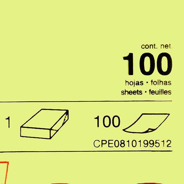Бумага для записей на клейкой основе "Kores", 75x75 мм, 100 листов, желтый неон