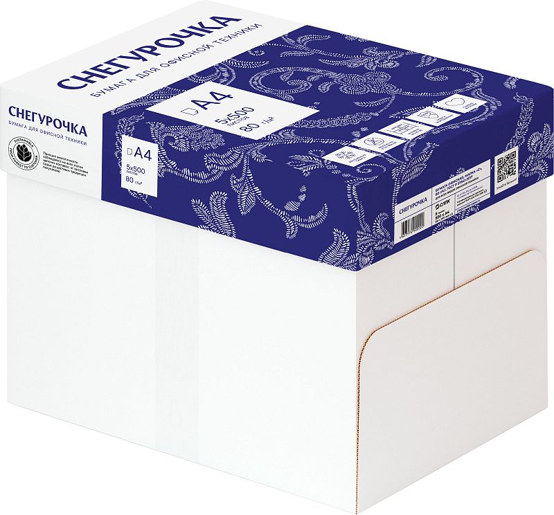 Снегурочка – эталон универсальной офисной бумаги марки «С», рекомендуется для повседневной печати на современной офисной технике. Снегурочка имеет равномерную структуру бумажного полотна. Ее белизна и непрозрачность, идеальная точность формата каждого листа обеспечивает безукоризненную качественную печать. Отбелена без применения хлора (ECF).