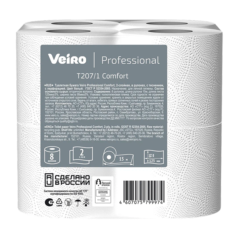 Бумага туалетная "Professional Comfort", 2 слоя, 8 рулонов