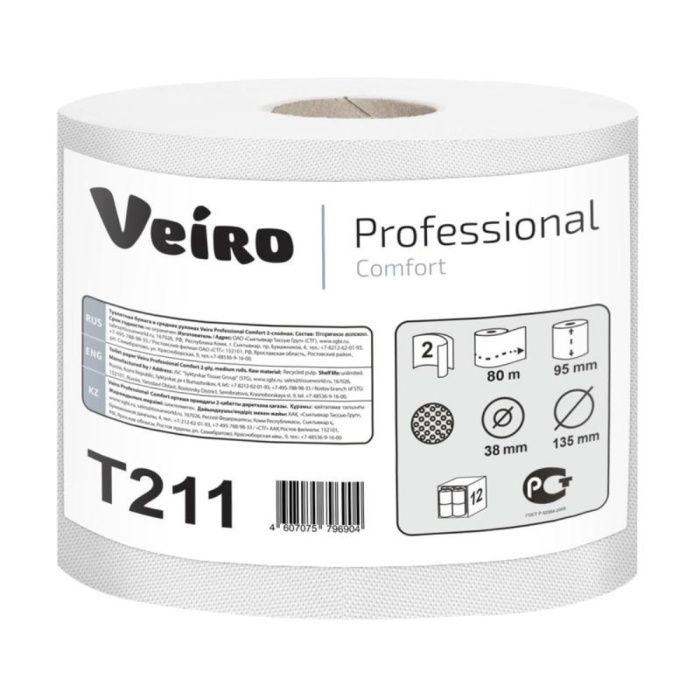Бумага туалетная "Professional Comfort", 2 слоя, 80 м