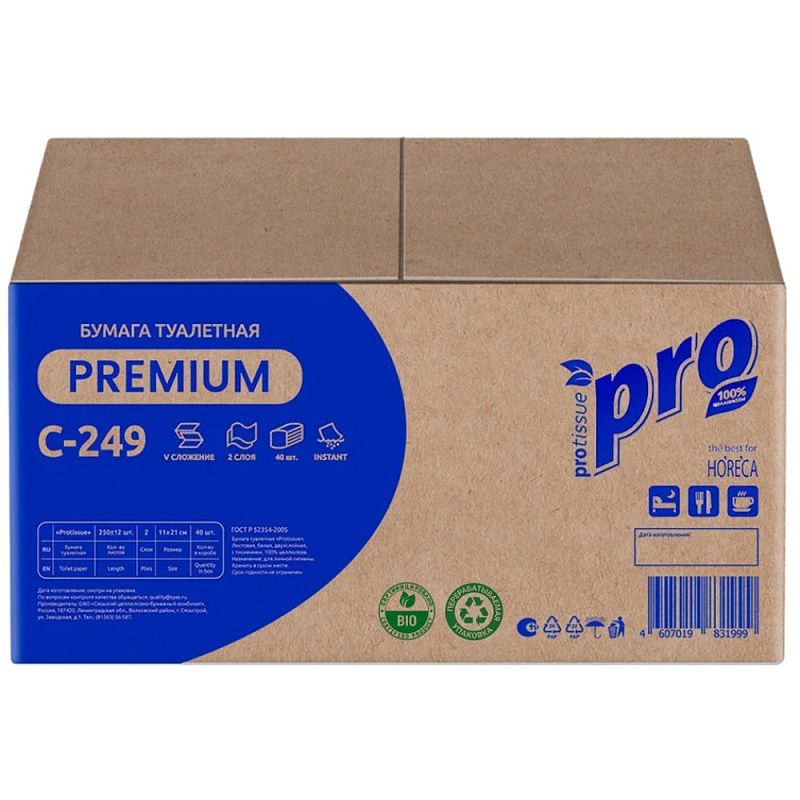 Бумага туалетная PROtissue, 250 листов, 2 слоя, Instant, 100% целлюлоза