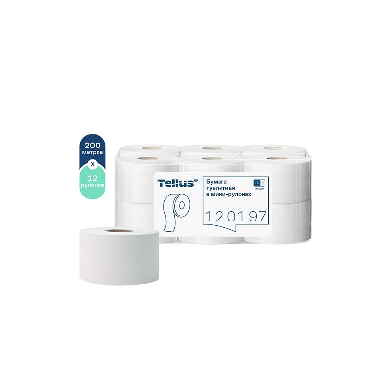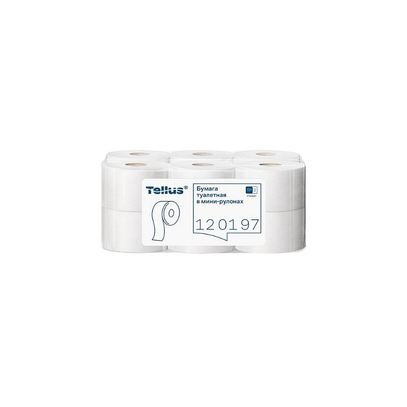 Однослойная туалетная бумага Tellus в мини-рулонах категории качества Стандарт удовлетворяет базовые потребности, предлагая при этом хорошее соотношение цены и качества, подходит для помещений со средней и высокой посещаемостью.