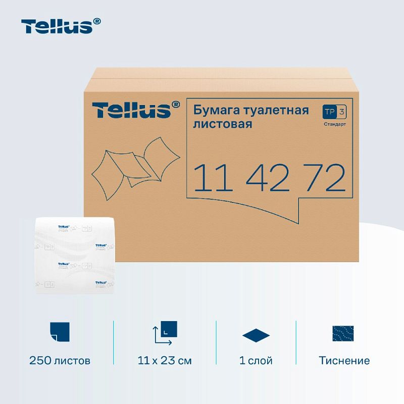 Однослойная листовая туалетная бумага Tellus категории качества Стандарт подходит для туалетных комнат с низкой и средней проходимостью. Обладает оптимальным соотношением цены и качества. Подходит для использования в диспенсерах Tork системы T3. Полистовой отбор обеспечивает гигиеничность и позволяет контролировать расход.