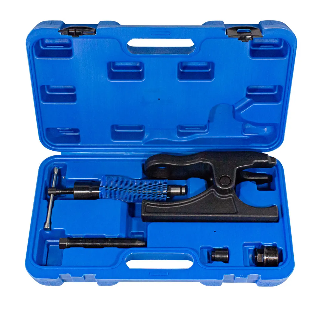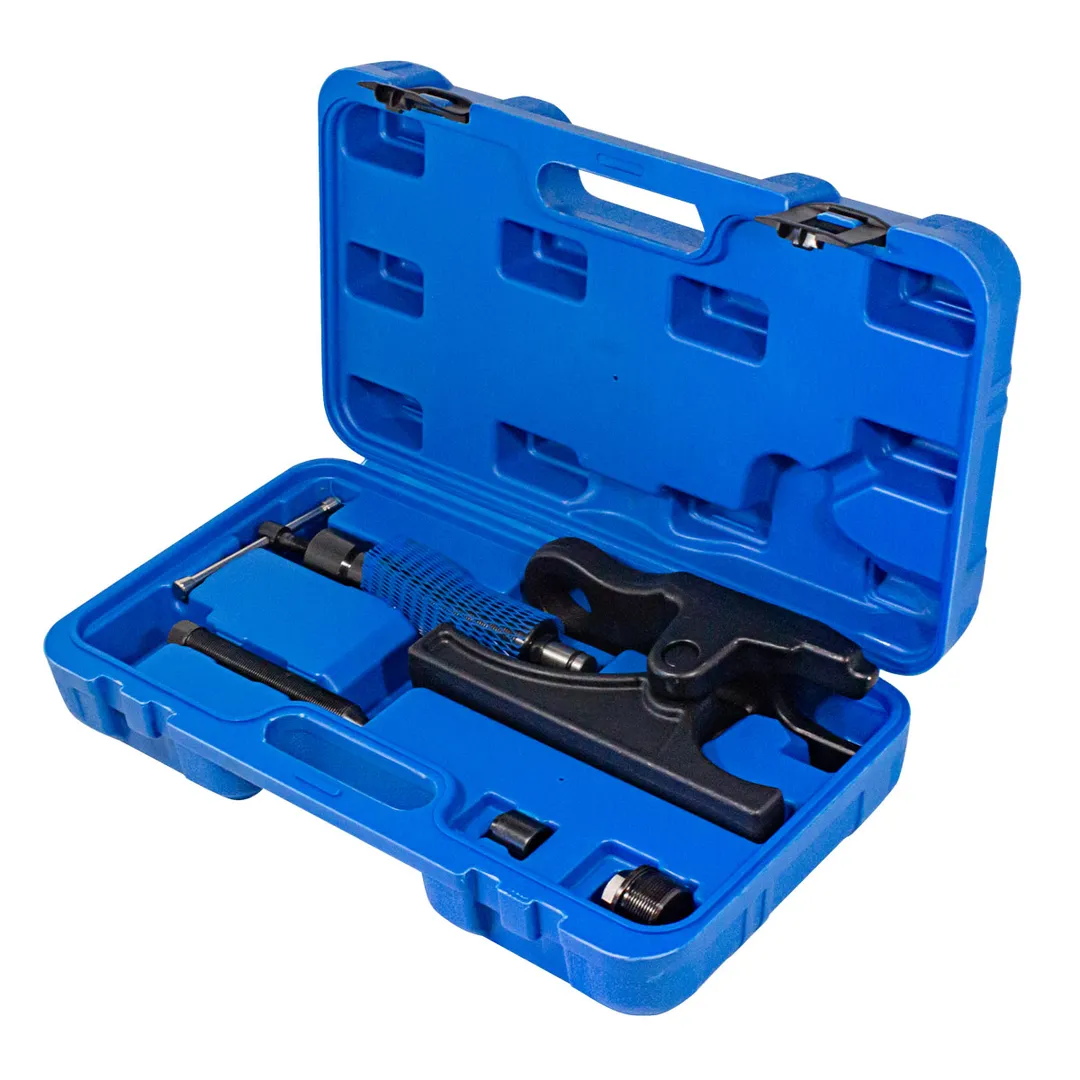Cъемник шаровых опор с гидравлическим винтом 10 тонн, 5 предметов в кейсе - предназначен для демонтажа шаровой опоры и наконечников в большегрузных автомобилях. Усиленная вилка и рычаг съёмника позволяют прикладывать и выдержать большее усилие, чем его аналоги. Легко извлекает шаровую опору там, где пространство не позволяет использовать метод прямого действия. Раскрытие до 100 мм, ширина зева 35 мм. Гидравлический винт с давлением до 10 тонн позволяет извлечь макс. мощность с минимальным усилием, при работе с подшипниками / шкивами и валами. Винт также подходит для вытягивания ступиц, фланцев, шестерен и подшипников. Технические характеристики винта: - Общая длина - 200 мм - Диаметр - 40 мм - Т-образная рукоятка 130 мм - Мощность 10 тонн.Преимущества работы с нами