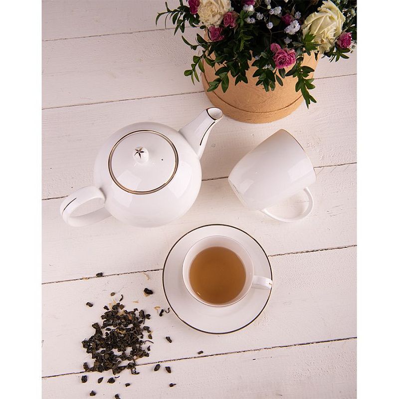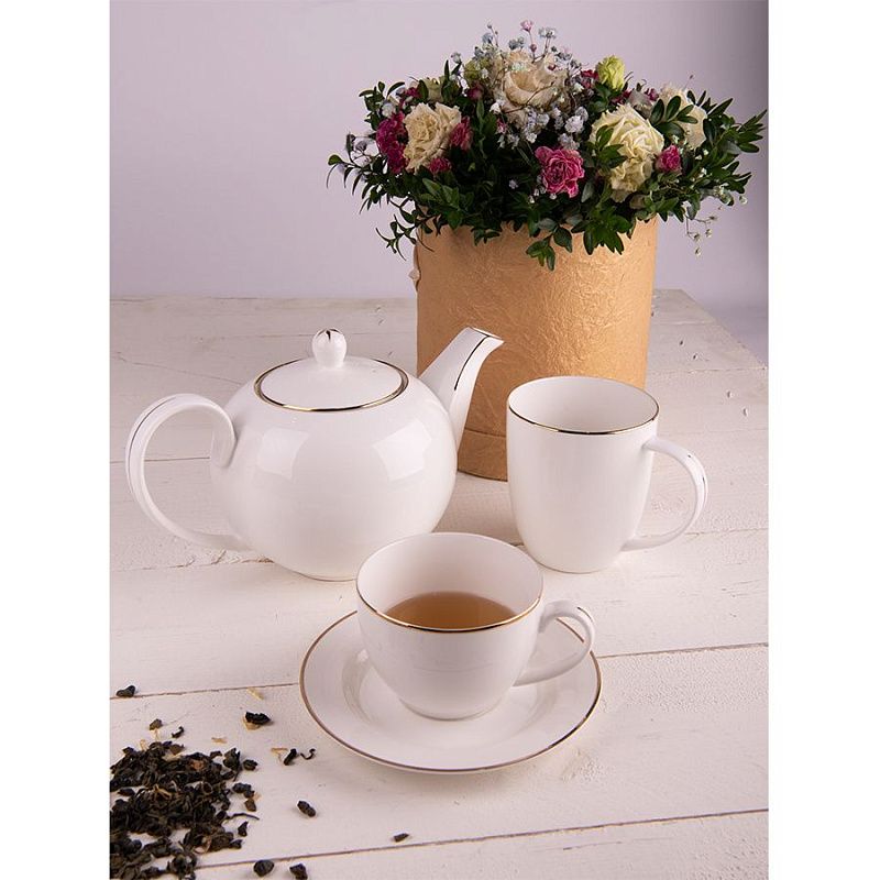 Чашка с блюдцем "Gold", фарфор, 250 мл, белый, золотистый