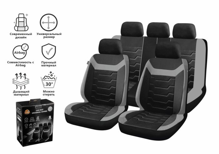Чехлы на сиденья автомобиля универсальные полиэстер черно-серые ARIZONE 40-155013