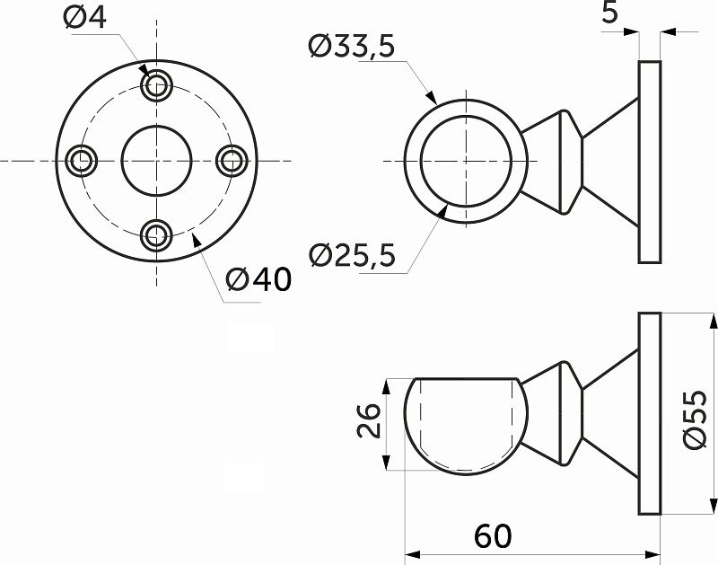Держатель дистанционный концевой трубы d25, 993, черный AKS 113969