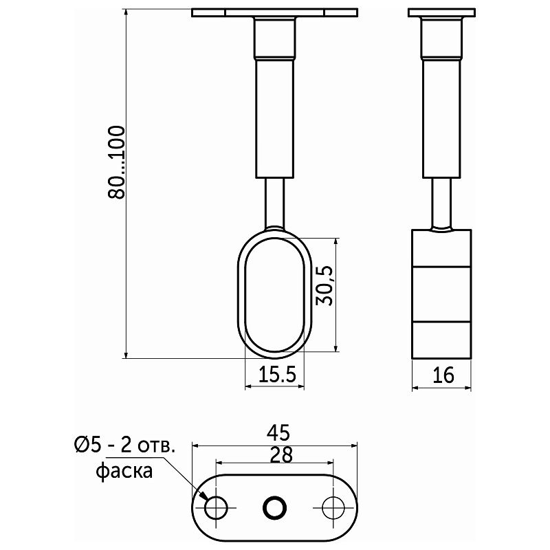 Держатель дистанционный проходной трубы овальн. 30*15, 935, регулируемый, черный AKS 113972, описание: