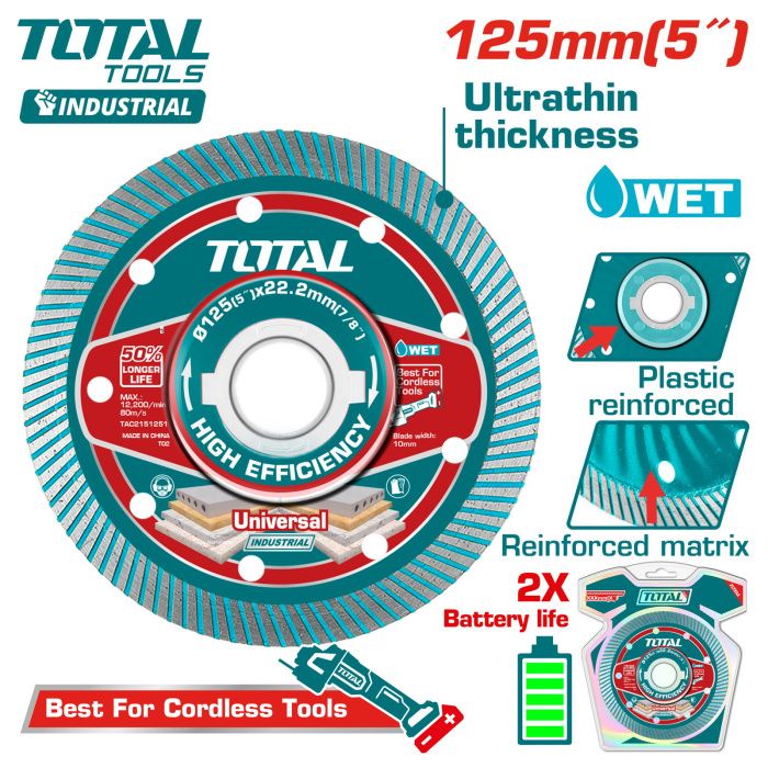 Диск алмазный 125х10х22,2 мм TOTAL TAC2151251, описание: