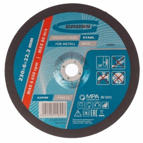 Круг шлифовальный по металлу, 125х6,0х22,2 мм Gross 74400, описание: