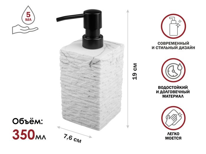 Диспенсер, дозатор для мыла STONEWAVE, белый, PERFECTO LINEA 35-130811